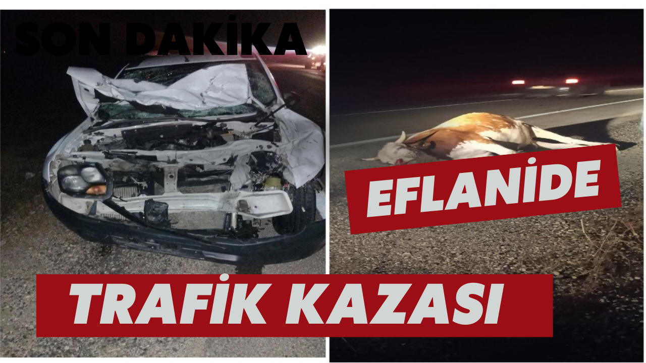 Karabük’ün Eflani ilçesi ile Kastamonu’nun Pınarbaşı ilçesi arasındaki karayolunda akşam saatlerinde bir trafik kazası meydana geldi. Edinilen bilgilere göre, Pınarbaşı istikametine seyir halinde olan bir otomobil, yola aniden çıkan başıboş bir ineğe çarptı.